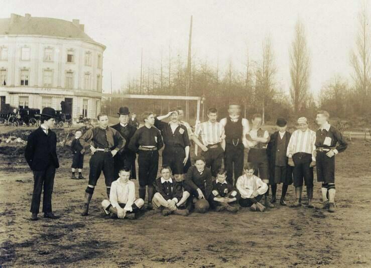 De eerste bekende foto van de voetbalafdeling van de Association Athlétique La Gantoise, vermoedelijk genomen in 1900 op het Carpentierplein, de eerste speelplek van La Gantoise. Bron Amsab.
